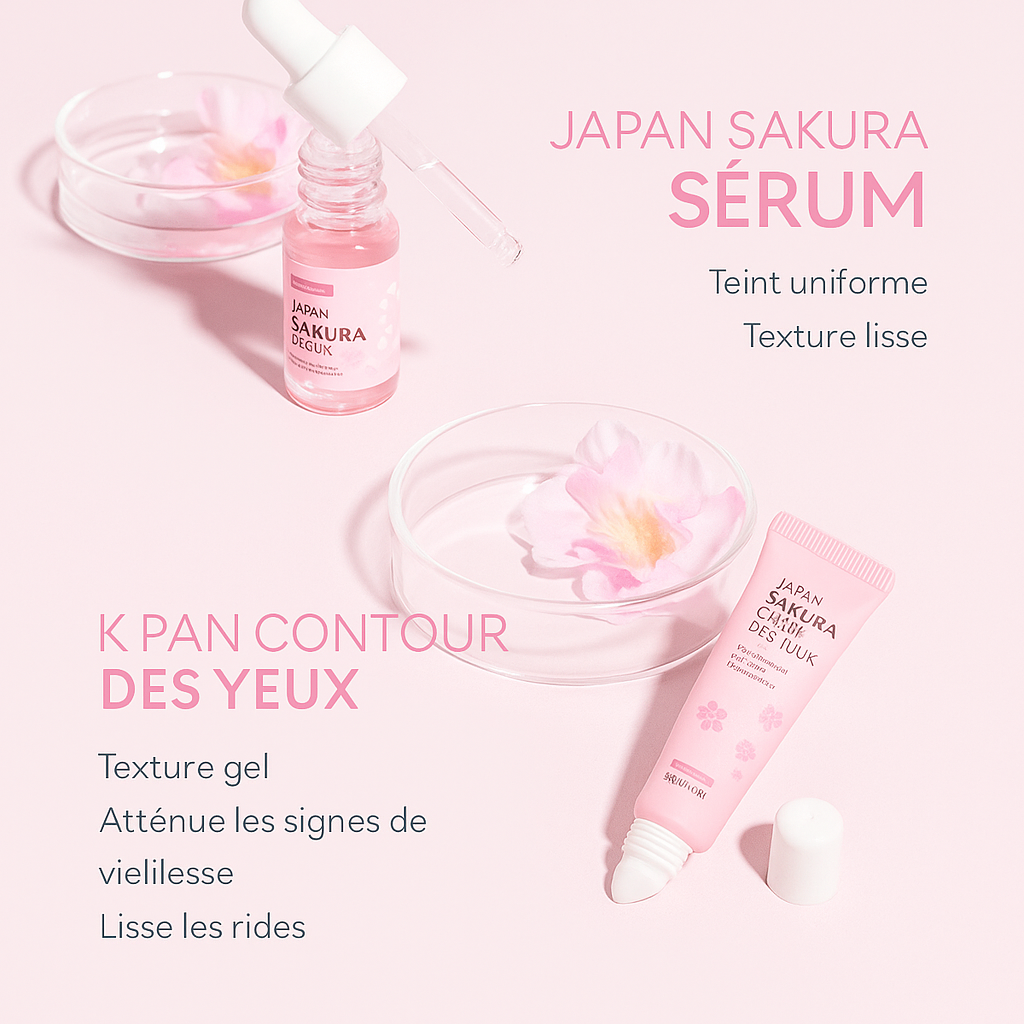 🌸 Plongez au cœur du rituel beauté japonais avec Sakura Glow, le soin qui réveille la lumière naturelle de votre peau. Enrichie en extraits de fleur de cerisier, cette formule délicate hydrate intensément, apaise les tiraillements et révèle un éclat frais et lumineux dès la première application.